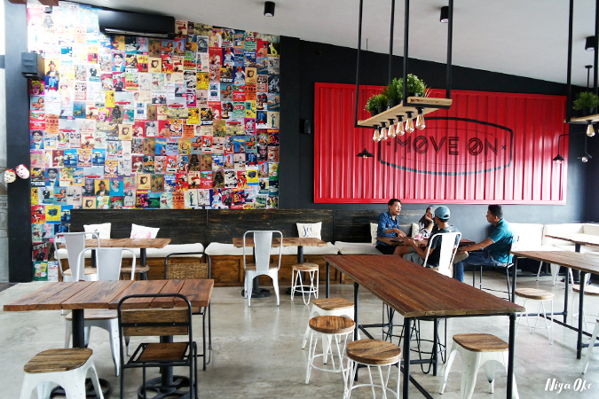Terdiri dari 2 lantai, MOVE ON ini boleh dibilang cukup luas. Penampilannya seperti coffee shop-coffee shop yang lagi in di Jakarta, di mana setiap sisi ruangannya sangat instagrammable.